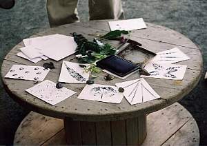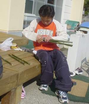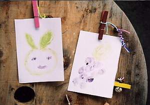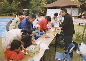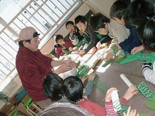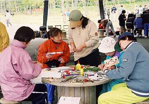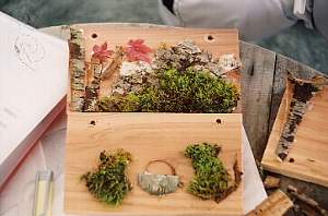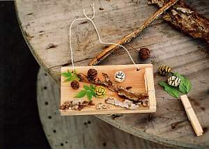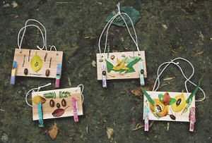 木の実や押し花など、いろいろなものを自分のアイデアで飾ります。