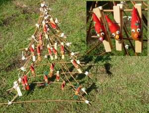 洗濯バサミの裏に針金を刺しこむ穴をあけておきます。