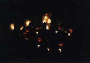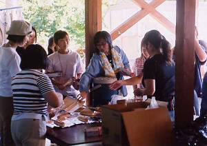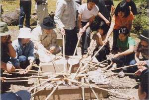竹でパンやマシュマロを焼く